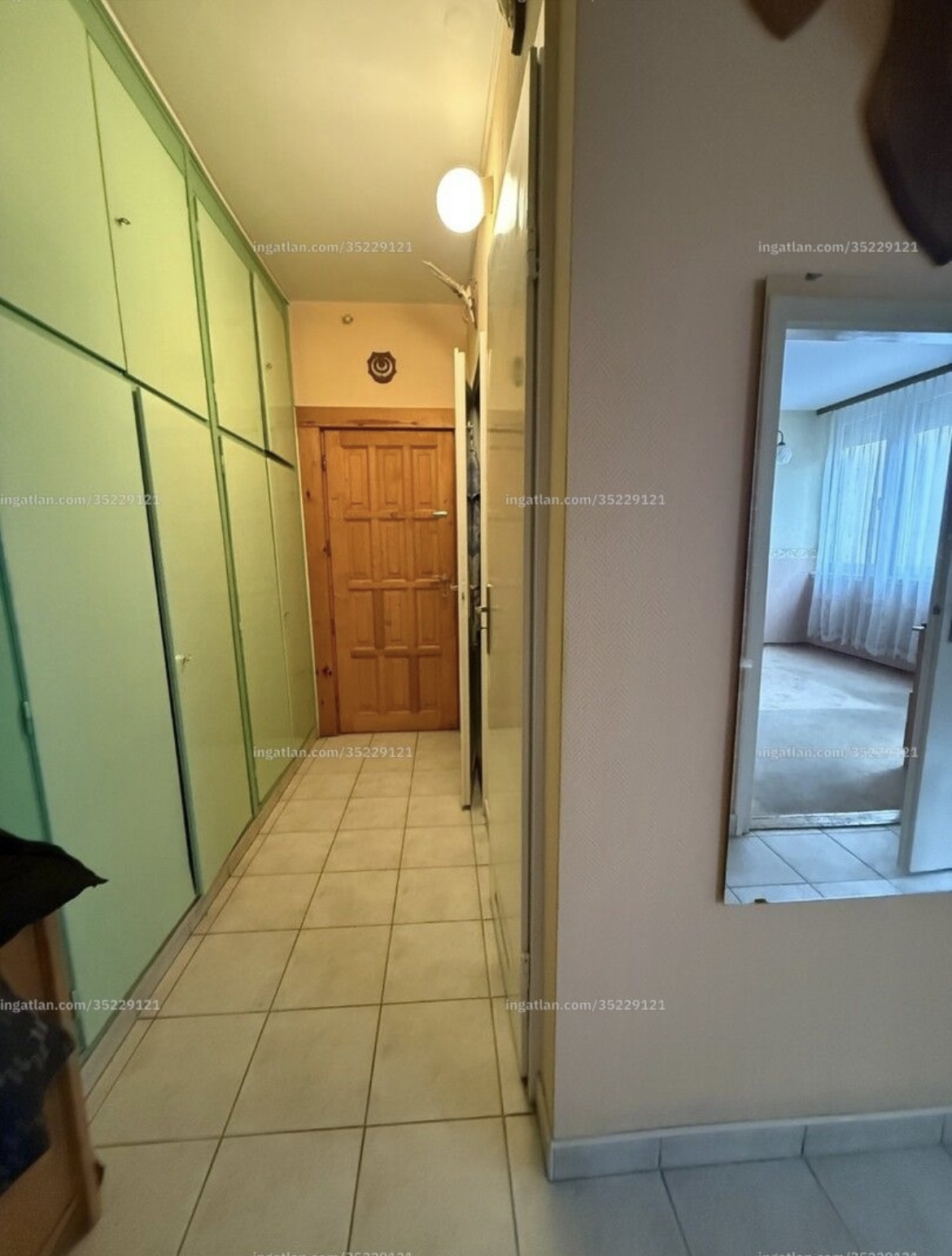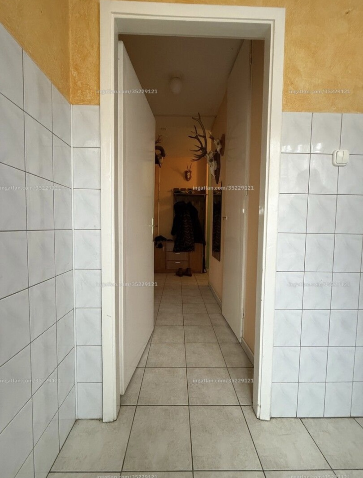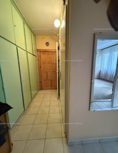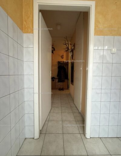 A bejárattól a konyháig terjedő előszoba fala részben beépített szekrénnyel ellátott.
